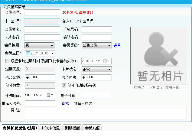 1. 辦理會員:會員卡號可以填寫客戶的手機號碼下次客戶沒有帶卡也可以進行消費,還可以上傳會員的照片可以核對每次持卡消費的會員是否是本人,可以選擇對應的會員等級月卡、季度卡、年卡還可以設置對應等級的過期時間,到期的會員系統會進行提醒。