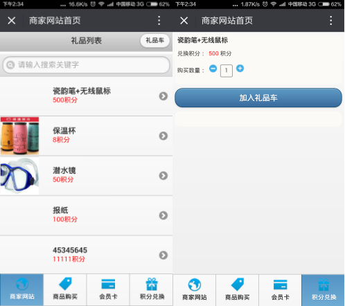 可以進(jìn)行查看會員信息、購物車、商家優(yōu)惠活動,門店查詢,產(chǎn)品中心,分享到朋友圈。